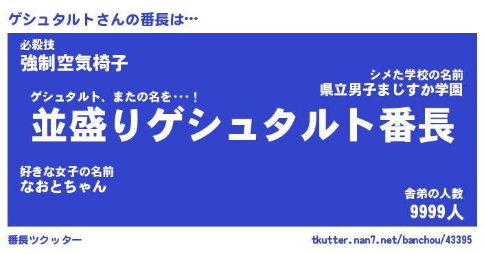 | ポケモン風あだ名 | 『ゲシチュウ』『ゲシュダネ』 |