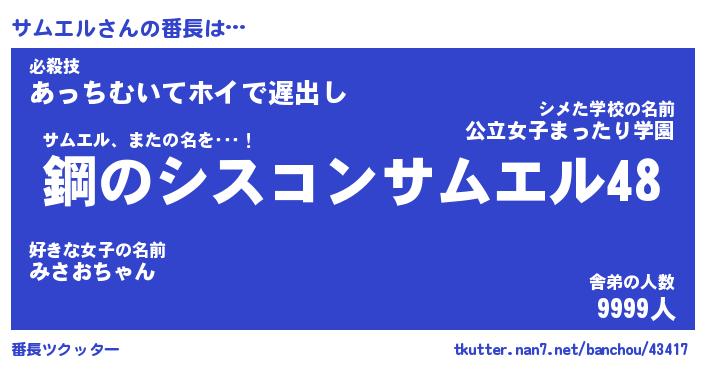 | 意味不明あだ名 | 『ペロリンサムエル』『永久保存サムエル』 |