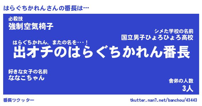 | 伝説のあだ名 | 『伝説のスナイパーはらぐちかれん』 |
