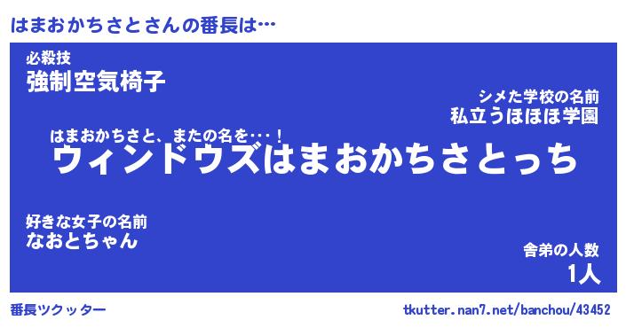 | 伝説のあだ名 | 『伝説のスナイパーはまおかちさと』 |