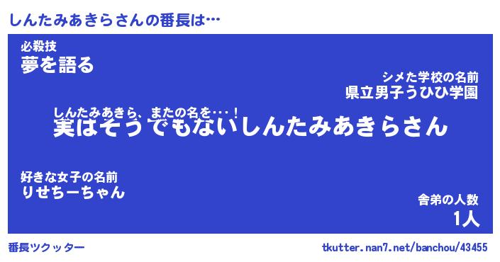 | 肩書あだ名 | 『しんたみあきら社長』 |