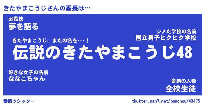 | 伝説のあだ名 | 『伝説のスナイパーきたやまこうじ』 |