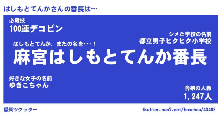 | 伝説のあだ名 | 『不死鳥のスナイパーはしもとてんか』 |