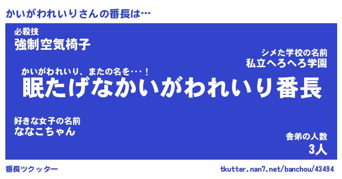 | 2回繰り返すあだ名 | 『かいかい』『かかいい』『おらおら』 |