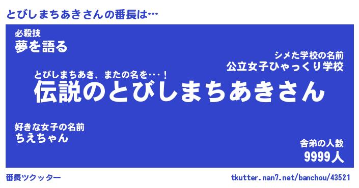 | ヘコむあだ名 | 『とびにゅー』『豆乳』『とびを』 |