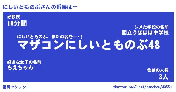| 肩書あだ名 | 『にしいとものぶ御曹司』 |