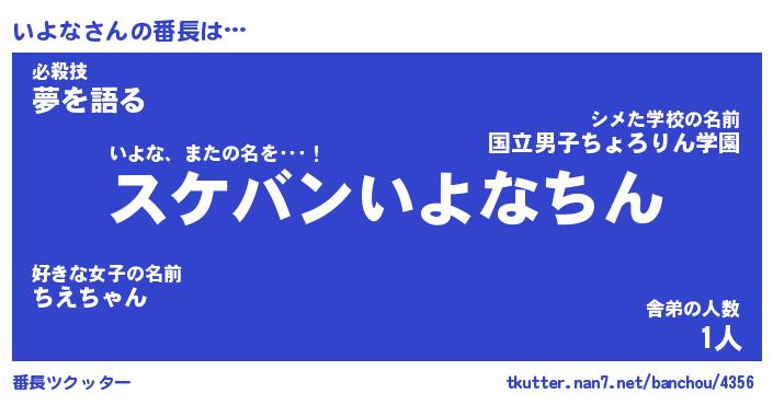 | ヘコむあだ名 | 『いよふぇ~』『豆乳』『いよっぺ』 |