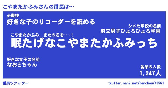 | 肩書あだ名 | 『こやまたかふみ御曹司』 |