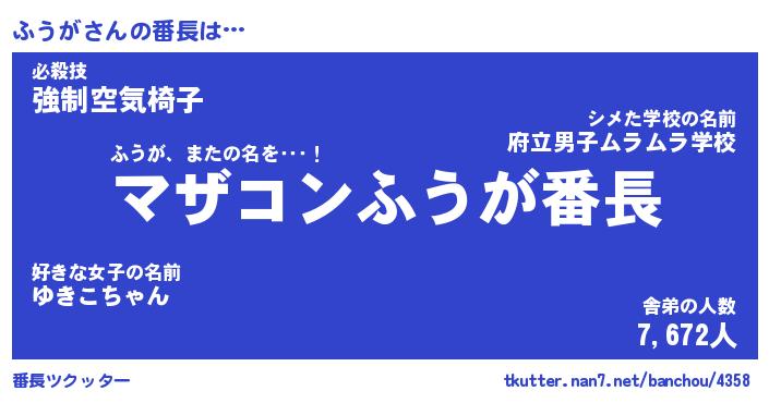 | ヒーロー風カッコイイあだ名 | 『スーパーフウガ』『ウルトラふうがマン』 |
