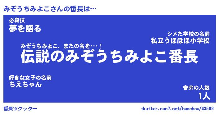 | ヒーロー風カッコイイあだ名 | 『スーパーミゾウチミヨコ』 |