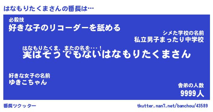 | 肩書あだ名 | 『はなもりたくま社長』 |