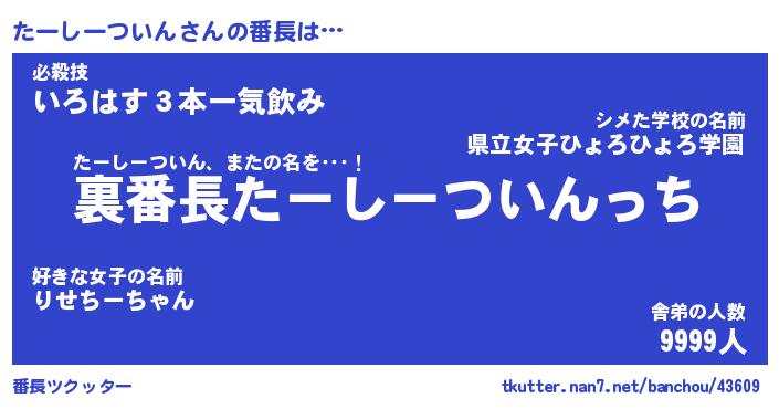 | 肩書あだ名 | 『たーしーついん御曹司』 |