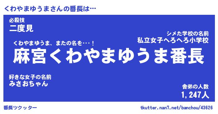 | ヒーロー風カッコイイあだ名 | 『スーパークワヤマユウマ』 |
