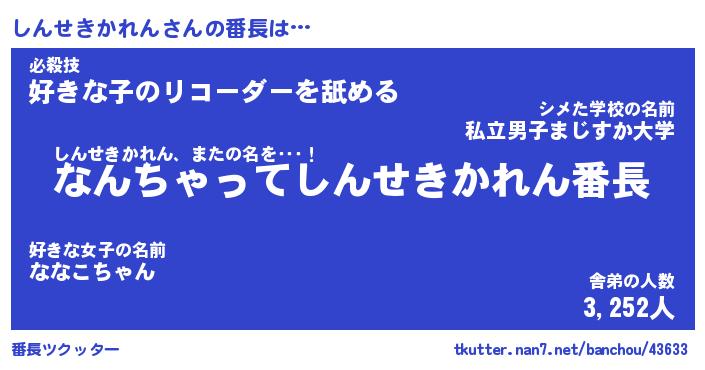 | 肩書あだ名 | 『しんせきかれんCEO』 |
