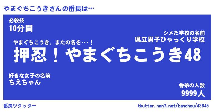 | ヒーロー風カッコイイあだ名 | 『スーパーヤマグチコウキ』 |