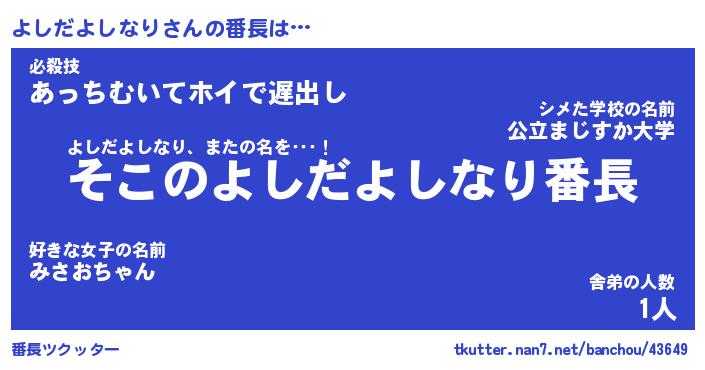 | 肩書あだ名 | 『よしだよしなり御曹司』 |