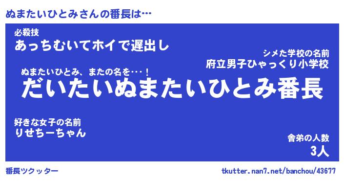 | 2回繰り返すあだ名 | 『ぬまぬま』『ぬぬまま』『おたおた』 |
