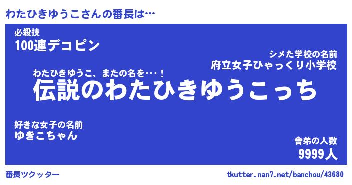 | 胡散臭い通販商品みたいなあだ名 | 『必ず成功するブレスレット…その名も「わたひきゆうこ」』 |