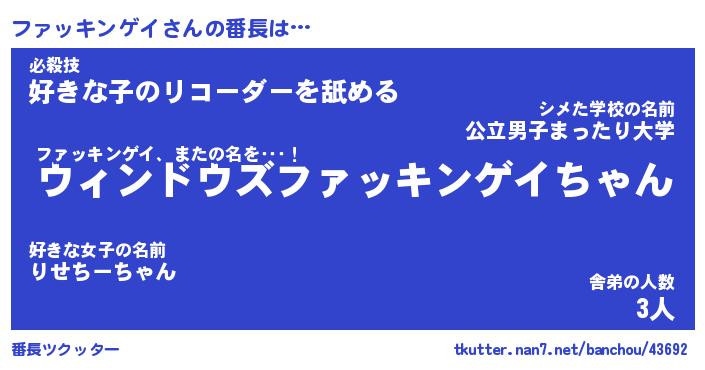 | 意味不明あだ名 | 『ペロリンファッキンゲイ』 |