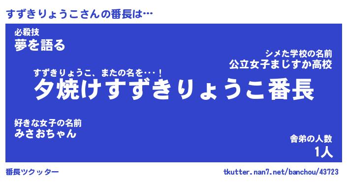 | ヒーロー風カッコイイあだ名 | 『スーパースズキリョウコ』 |