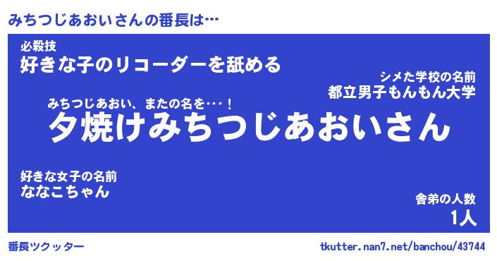 | 伝説のあだ名 | 『封印されし竜騎士みちつじあおい』 |