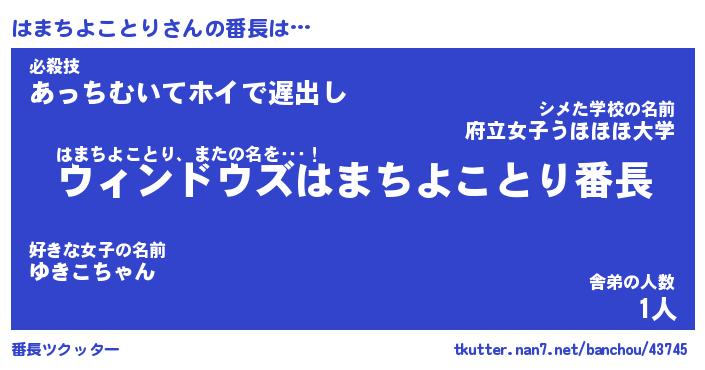 | 伝説のあだ名 | 『伝説のスナイパーはまちよことり』 |