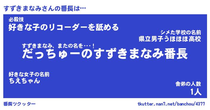 | 肩書あだ名 | 『すずきまなみ社長』『すずきまなみ班長』 |