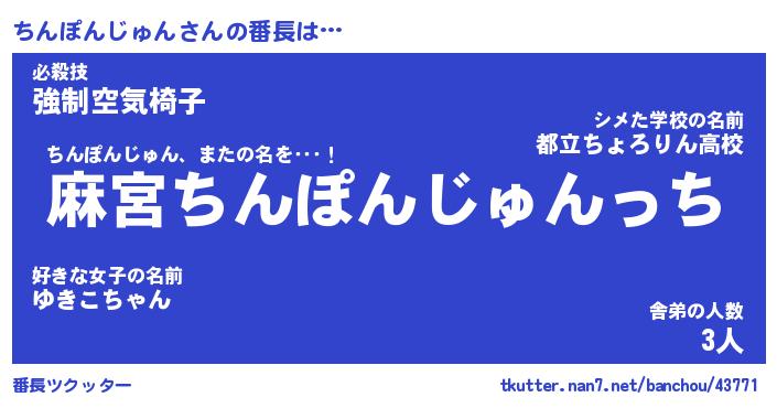 | ヒーロー風カッコイイあだ名 | 『スーパーチンポンジュン』 |
