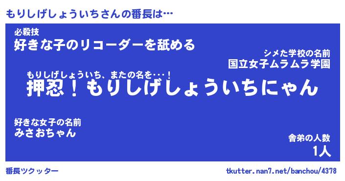| ヒーロー風カッコイイあだ名 | 『スーパーモリシゲショウイチ』 |
