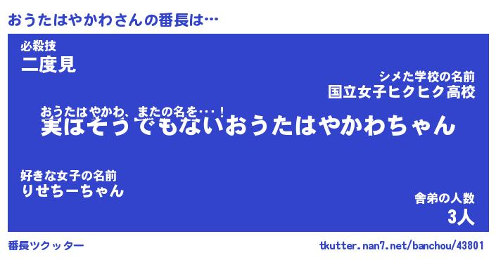 | 2回繰り返すあだ名 | 『おうおう』『おおうう』『ぼさぼさ』 |