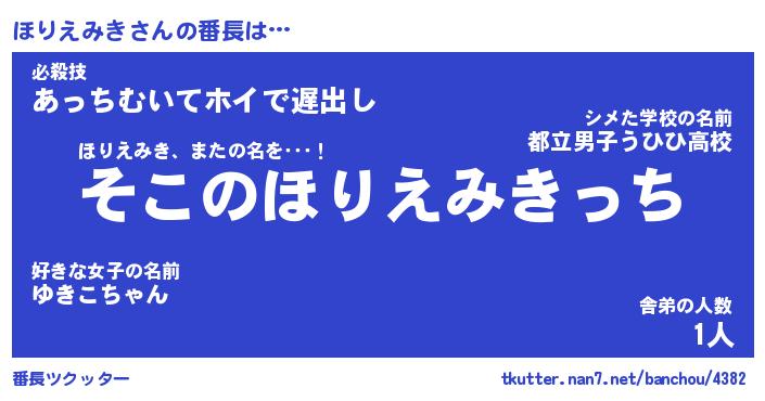 | ヒーロー風カッコイイあだ名 | 『スーパーホリエミキ』『天弓騎士ホリ』 |