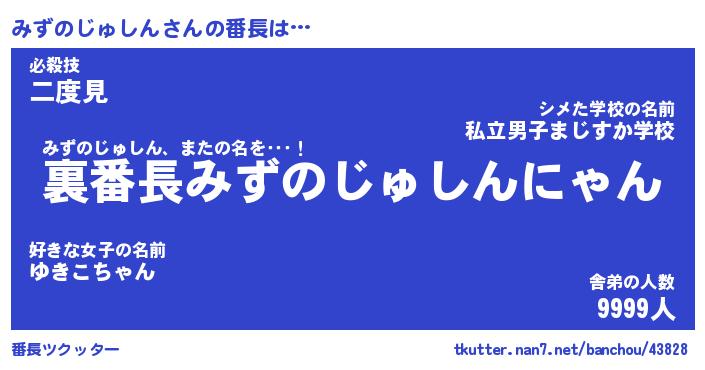 | ヒーロー風カッコイイあだ名 | 『スーパーミズノジュシン』 |