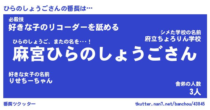 | ピコ太郎風あだ名 | 『ヒコ六郎』『ピヒ五郎』『ヒラ十郎』 |