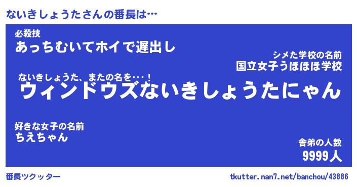 | 伝説のあだ名 | 『伝説のスナイパーないきしょうた』 |