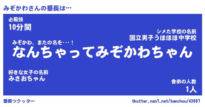 | ヒーロー風カッコイイあだ名 | 『スーパーミゾカワ』『暗黒騎士ミゾ』 |