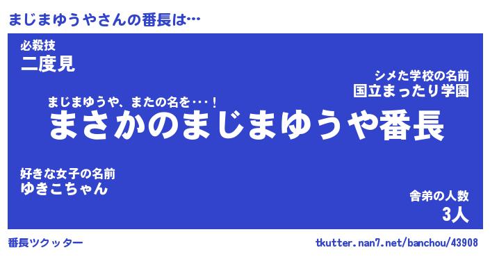 | 伝説のあだ名 | 『伝説のスナイパーまじまゆうや』 |