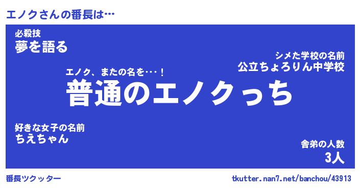 | ヒーロー風カッコイイあだ名 | 『スーパーエノク』『ウルトラエノクマン』 |