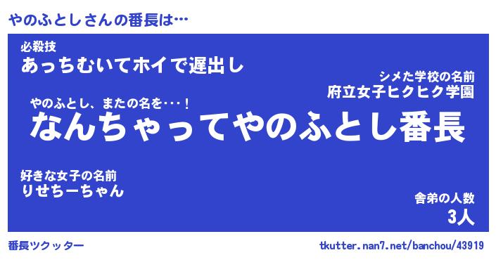 | 伝説のあだ名 | 『伝説のスナイパーやのふとし』 |