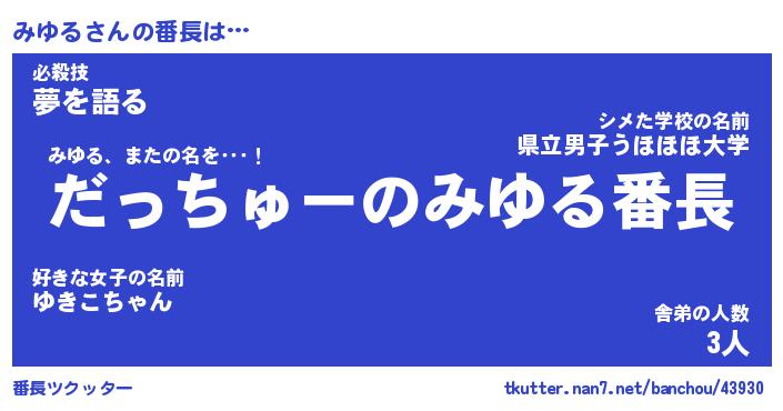 | 伝説のあだ名 | 『伝説のスナイパーみゆる』 |