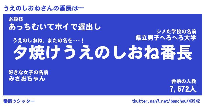 | 肩書あだ名 | 『うえのしおね御曹司』 |