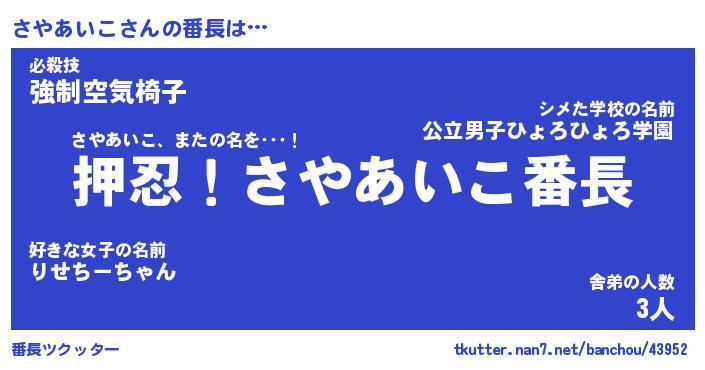 | 肩書あだ名 | 『さやあいこ店長』『さやあいこ総理大臣』 |