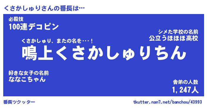 | ピコ太郎風あだ名 | 『クコ二郎』『ピク史郎』『クサ一郎』 |