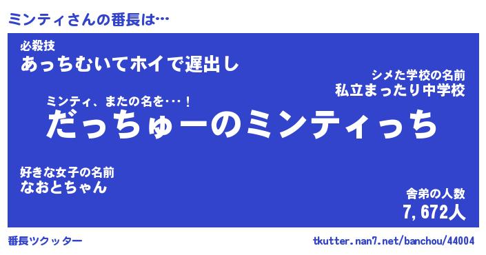 | 意味不明あだ名 | 『ペロリンミンティ』『永久保存ミンティ』 |