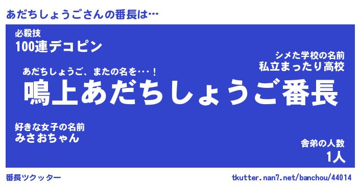 | ツイッター | あだちしょうごさんのツイッターID『namakemono_idle』 |