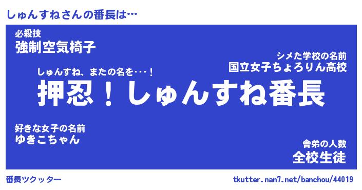 | ヘコむあだ名 | 『しゅにー』『つくし』『しゅっちょ』 |
