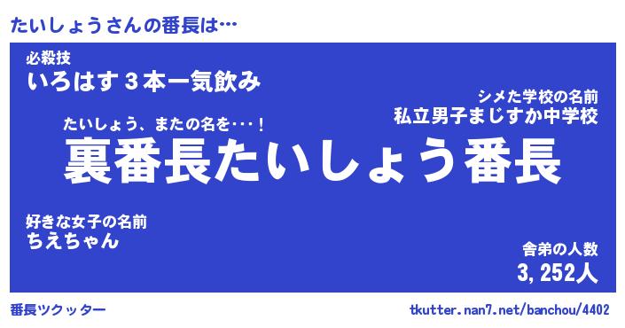 | ファンタジー風あだ名 | 『タイフェル』『エターナルタイショウー』 |
