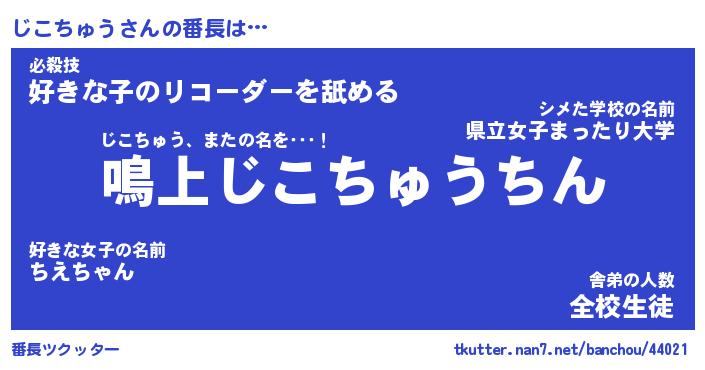 | ファンタジー風あだ名 | 『ジコフェル』『エターナルジコチュウー』 |