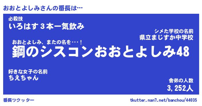 | 肩書あだ名 | 『おおとよしみCEO』『おおとよしみ班長』 |