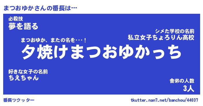 | ファンタジー風あだ名 | 『マツフェル』『エターナルマツオユカー』 |
