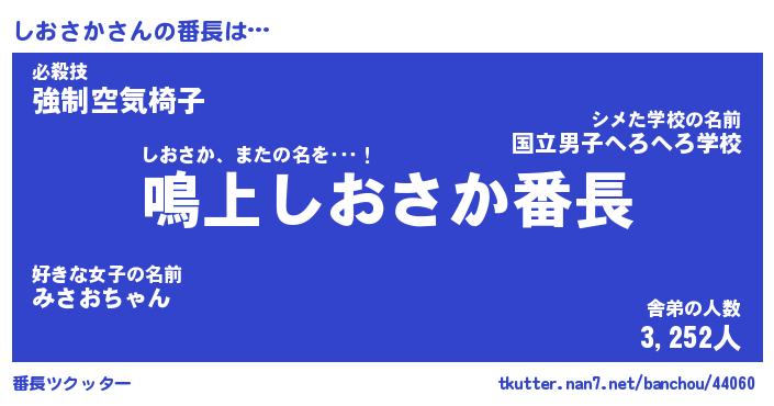 | ヒーロー風カッコイイあだ名 | 『スーパーシオサカ』『幻影騎士シオ』 |